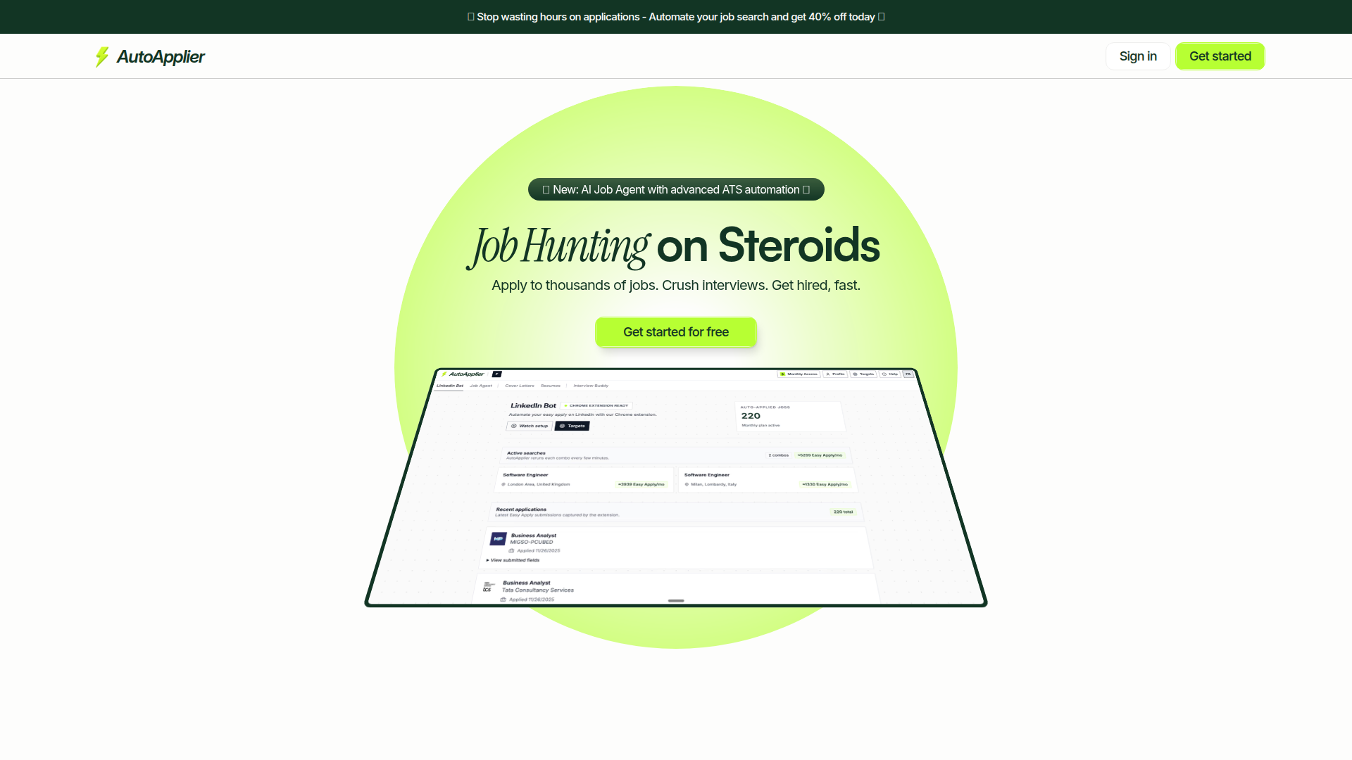 Automate job applications. AI resume, cover letter, and interview tools. Land your dream job faster with AutoApplier.