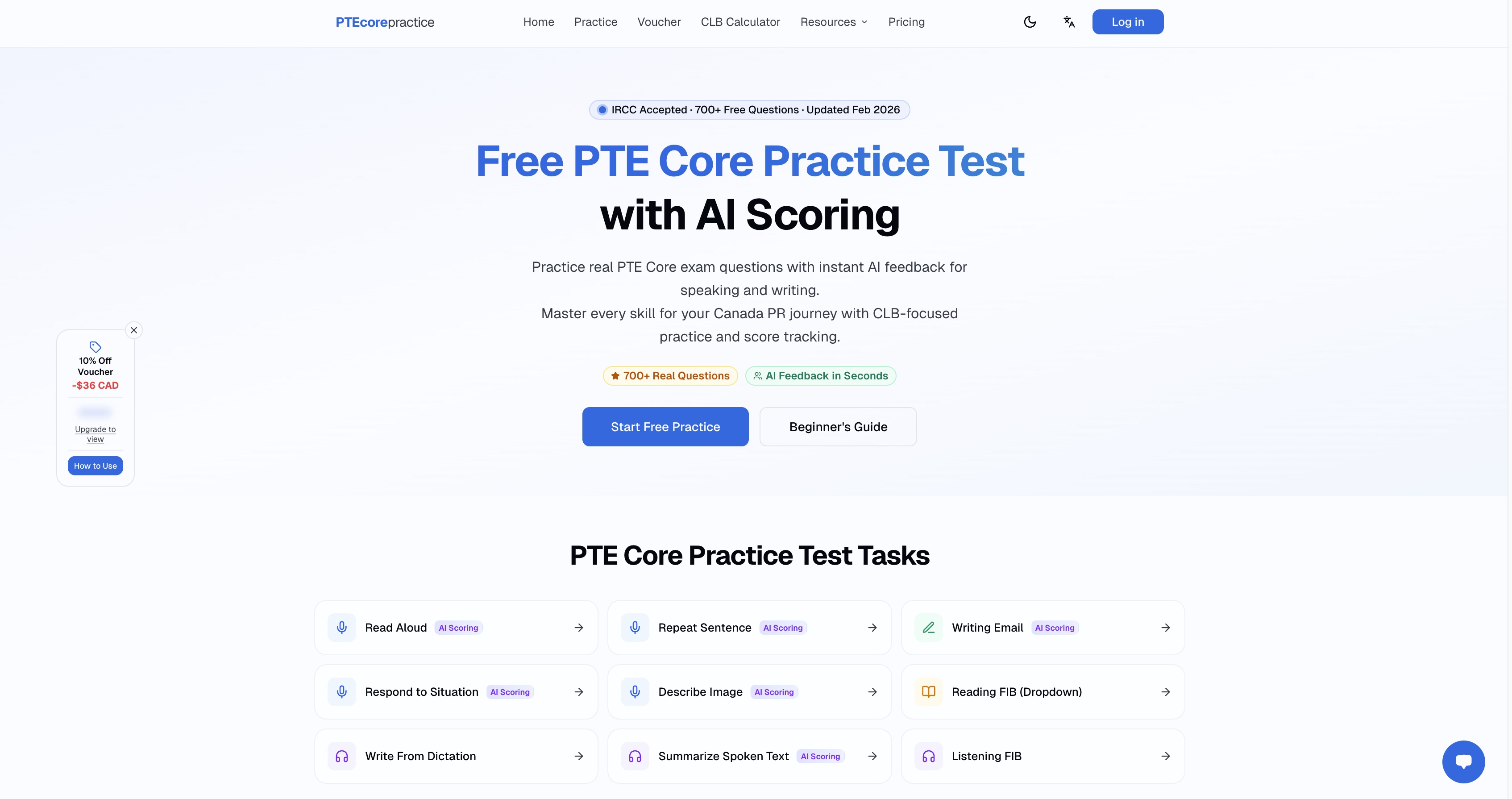 PTE Core Practice is a comprehensive online platform designed to help individuals prepare for the Pearson Test of English (PTE) Core exam, specifically for Canadian immigration purposes. This platform offers free practice tests with instant AI Scoring and features a vast question bank comprised of over 997 real exam-like questions. It covers speaking, writing, reading, and listening sections, providing a realistic testing environment to help users improve their proficiency and achieve the required CLB (Canadian Language Benchmark) level for Canada PR applications.