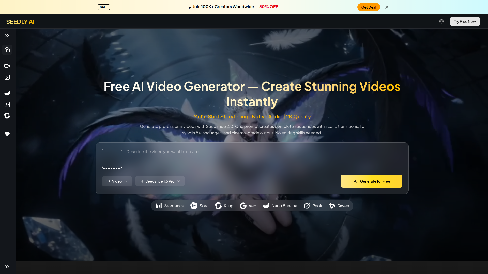Create stunning videos with Seedly AI's Seedance 2.0. Transform text, images, or audio into professional-quality video content effortlessly.