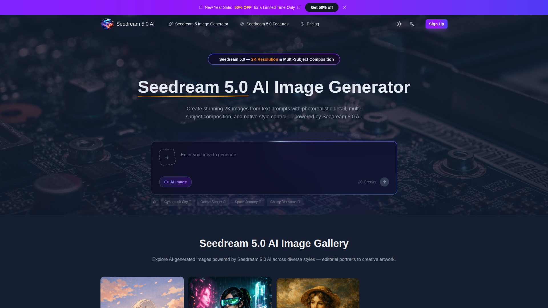Seedream 5.0 AI is a cutting-edge AI image generator that transforms text prompts into stunning 2K resolution images. It excels in photorealistic detail and multi-subject composition. Designed for creators, designers, and marketing teams, Seedream 5.0 offers native style control and fast generation speeds. Its image-to-image editing capabilities provide precise style transfer and object manipulation. Seedream 5.0 delivers professional-grade results. It supports diverse styles, from photorealism to anime, offers commercial licensing, and is mobile-compatible, making it an ideal tool for various creative projects.